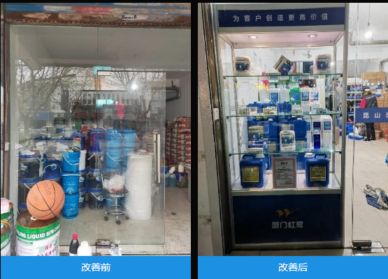 虹鹭的精益团队同样以改善周的形式,从门店的5S入手,对门店的环境进行了全面的清扫,对物品进行全面的整理、整顿。同时,从布局的角度优化整个门店货品进出作业,秉着“一切为工作服务”的理念,改变整个门店的经营形象。