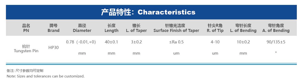 钨具有优异的可加工性能、高熔点、低膨胀系数等特性,现已逐步替代不锈钢,被广泛运用于电外科手术器械中,其中消融电极用钨针是较常见的一种。作为耐热材料,钨可保持针尖锋利,而锐利的尖端又有助于组织的清洁和精准切割。