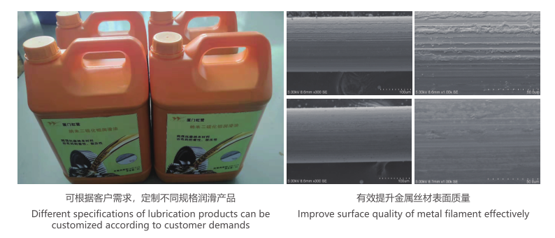 此外,虹鹭针对性地开发了亲水型、亲油型纳米片粉末产品,于液体中分散均匀、稳定,无沉淀。由于其优异的润滑特性,用于各类有色金属拉丝润滑可有效提升金属丝材表面质量,也可作为液压油和机油纳米润滑添加剂。发表于摩擦学学报与润滑科学的文献曾报道了纳米二硫化钼作为添加剂,能够显著改善润滑油的润滑性能。[1][2]